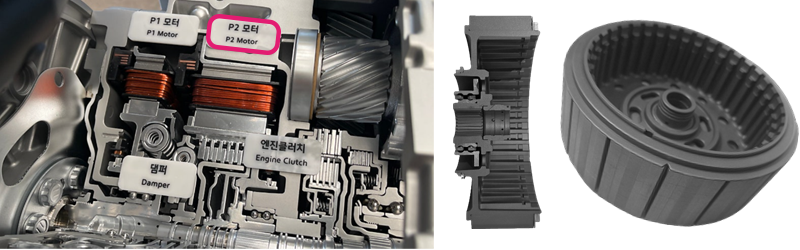 • 변속기 패키징 최적화 / 시리즈 댐퍼 + P1 모터 일체화