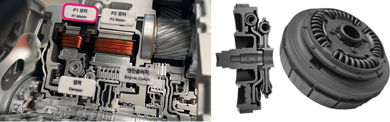 • 변속기 패키징 최적화 / 시리즈 댐퍼 + P1 모터 일체화